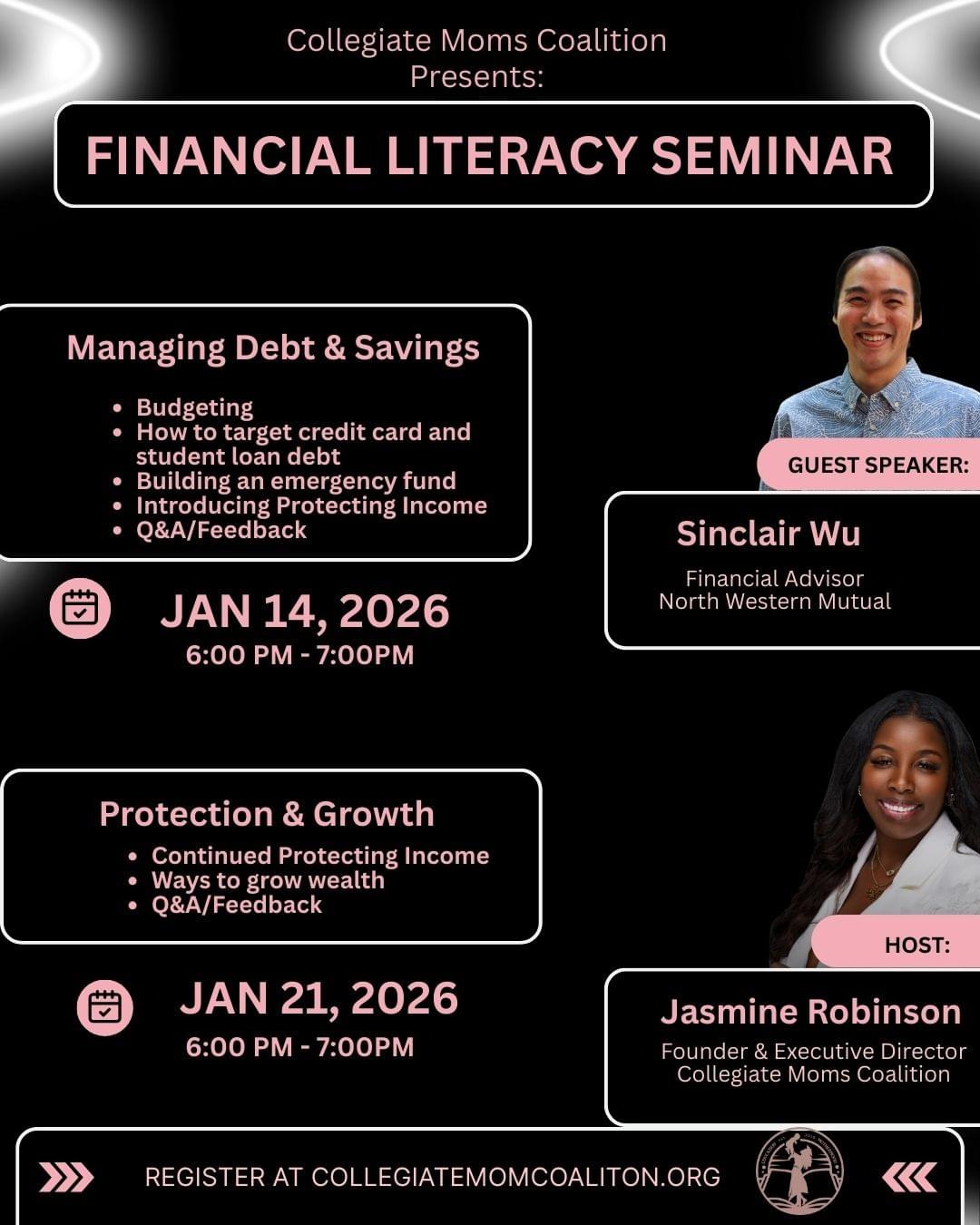 This two-part virtual seminar breaks down complex financial topics into clear, practical steps you can use right away; no prior financial knowledge required. Whether you’re managing debt, building savings, or learning how to grow wealth responsibly, this series is created to meet you where you are.